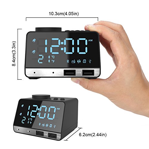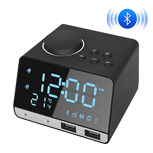 Kitbeez - Radiosveglia digitale con radio FM, doppio allarme, bluetooth, altoparlante
