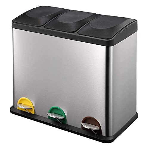 Pattumiera da cucina raccolta differenziata in acciaio inox 3 scomparti. (3 x 15 l).