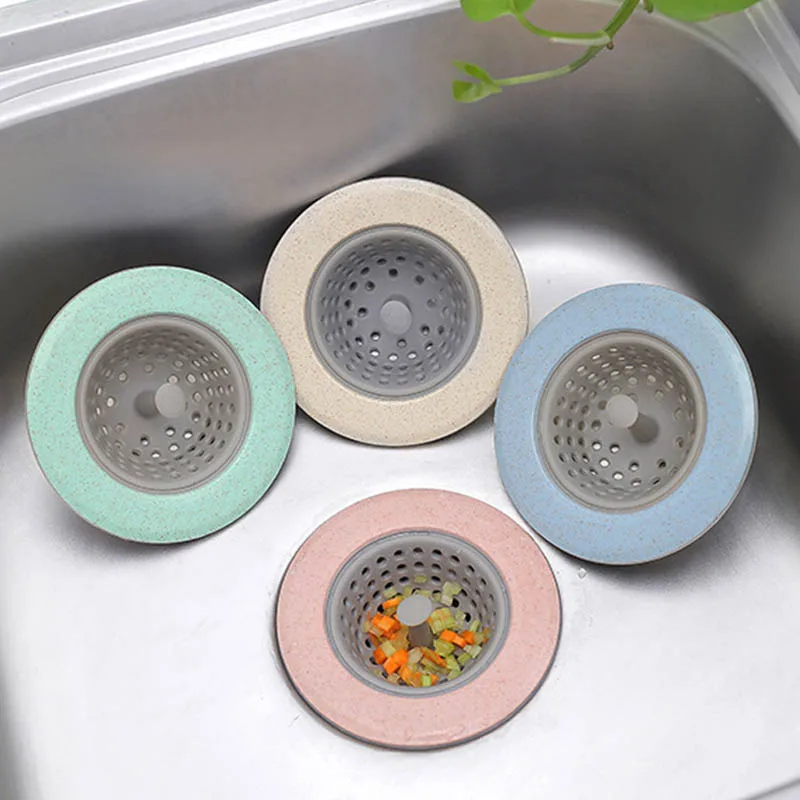 1Pcs Kitchen Sink Colander Bathroom Shower Drain Sewer Hair Filter Accessories Wheat Straw Silicone Sink Colander