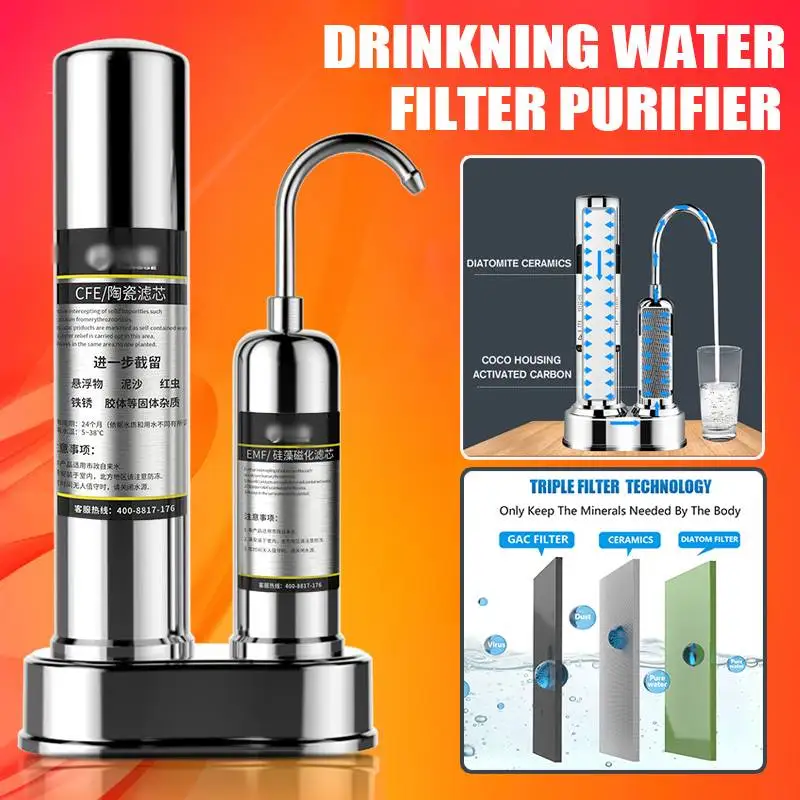 Kitchen Countertop Drinking Water Purifier Ceramic Activated Carbon Household Filter System Purifying Machine