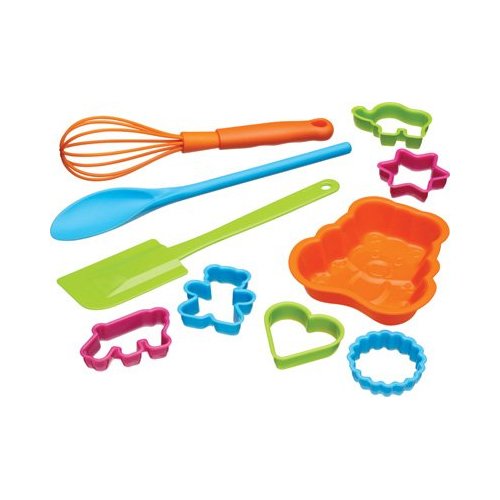 Set contiene silicone Mini frusta, spatola, cucchiaio, Siz assortiti stampini e uno stampo in silicone/torta.
