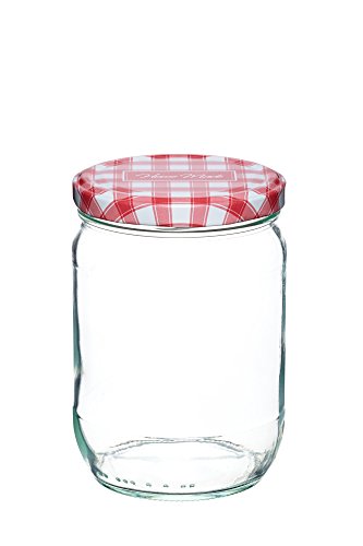 Presenta le tue premiate conserve, sottaceti o frutta in modo tradizionale con questo barattolo di vetro con coperchio a quadri.