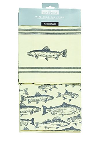 Kitchen Craft - Set di 2 canovacci in Cotone, Motivo Pesci