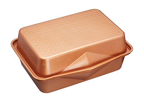 Kitchen Craft MasterClass Smart - Teglia da arrosto in Ceramica, impilabile, con Coperchio, Finitura in Rame, Argento, 41.5 x 31.5 cm