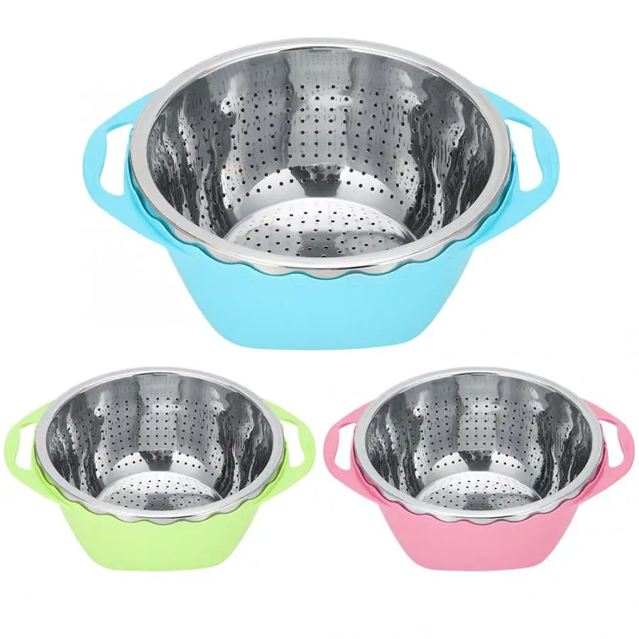 Home Kitchen Double-layer Drain Basket Rice Fruit Filter Washing Cleaning Basin Filter Basket
