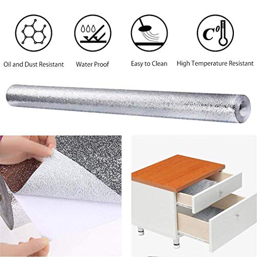 Kitchen-dream Carta da Parati del Foglio di Alluminio Carte da Parati autoadesive Impermeabili stagnola dargento Prova di umidità antiolio Adesivi murali per Cucina Armadio Bagno