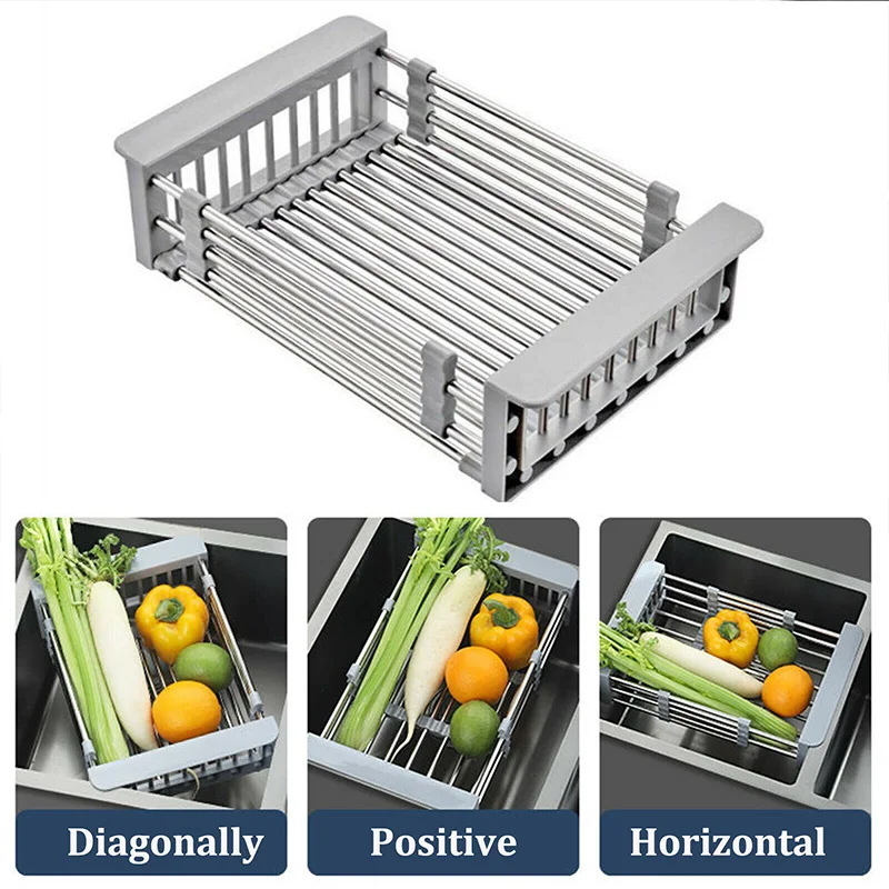 Kitchen Sink Shef Dish Drying Sink Rack Drain Strainer Adjustable Stainless Steel Basket for Kitchen Vegetable Fruit Wash