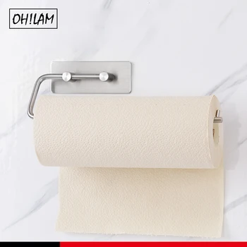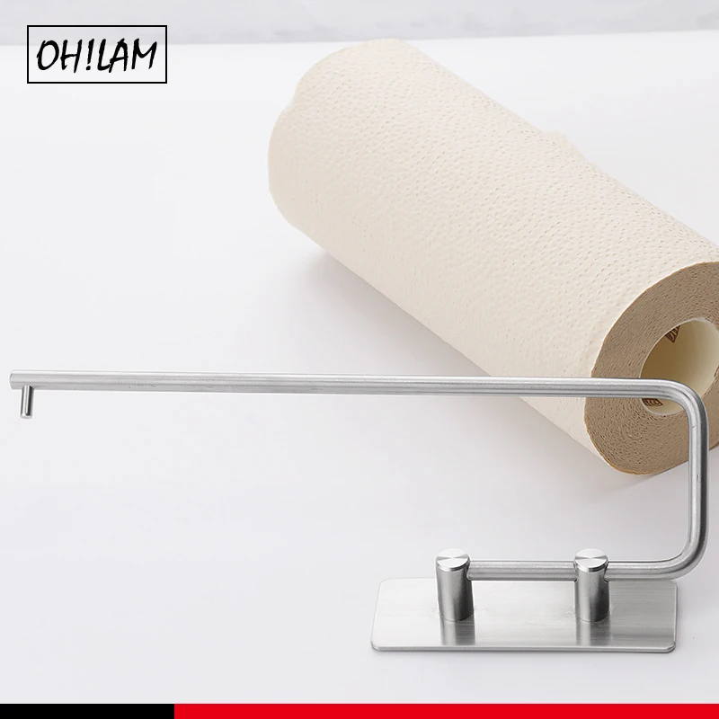 Kitchen Paper Holder Plastic Wrap 3M Sticker Self Adhesive Brushed Nickle Stainless Steel Roll Towel Holder No Drill Heavy Duty