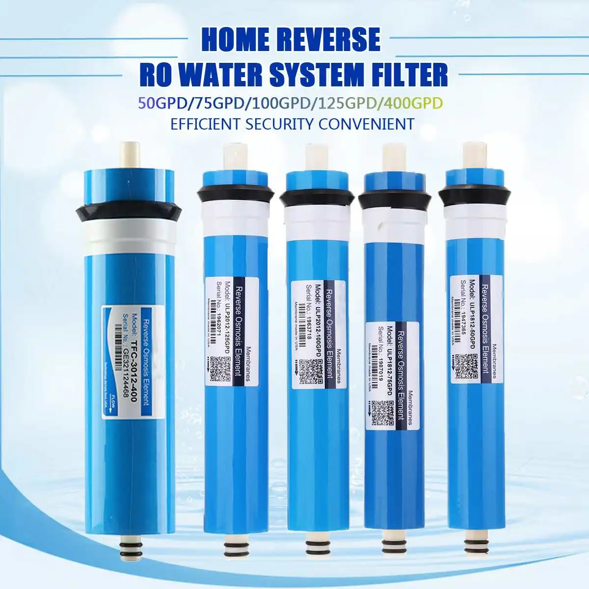 50/75/100/125/400GPD Home Kitchen Reverse Osmosis RO Membrane Replacement Water System Filter Purifier Water Drinking Treatment