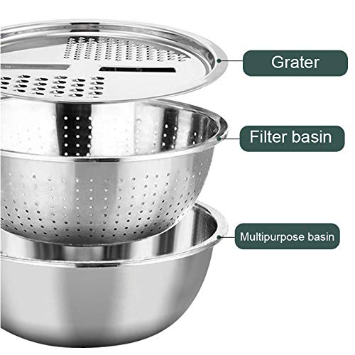JKHK Kitchen Slicer - 3 in 1 Kitchen Cheese Grater,Multifunctional Stainless Steel Basin Drain Basket Vegetable Cutter,for Vegetables Fruits Salad, Vegetable Chopper, Drain Basket, Container