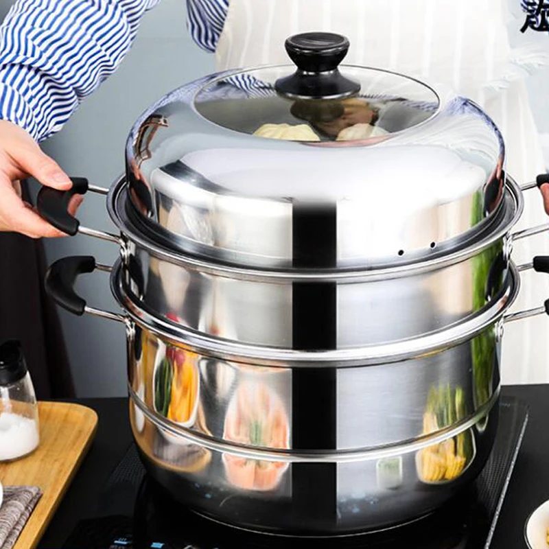 Kitchen Stainless Steel Two Three layer Thick Steamer pot Soup Universal Cooking Pots for Induction Cooker Gas Stove steam pot