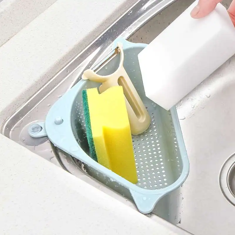 Kitchen Triangular Sink Strainer Drain Vegetable Fruite Drainer Basket Suction Cup Sponge Holder Storage Rack Sink Filter Shelf