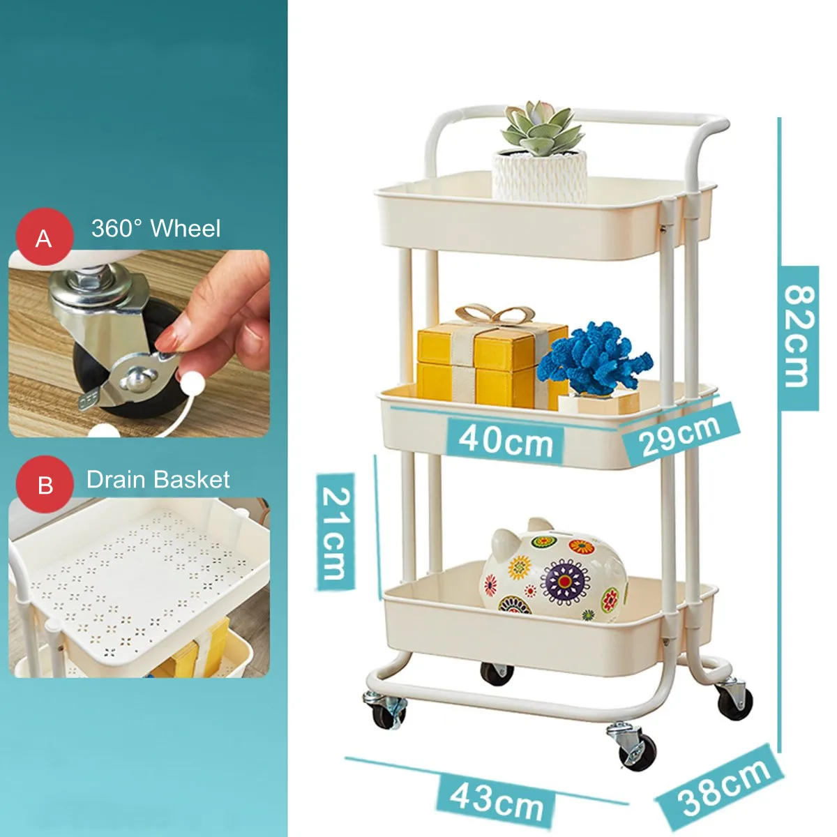 3 Tier Kitchen Trolley Storage Organizer Rack Organizer Serving Trolley Kitchen Bathroom Rolling Trolley Cart Basket Stand