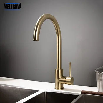 Kitchen Water Tap Brushed Gold & Black Kitchen Faucet Single Handle Rotation Classical Sink Water Mixer