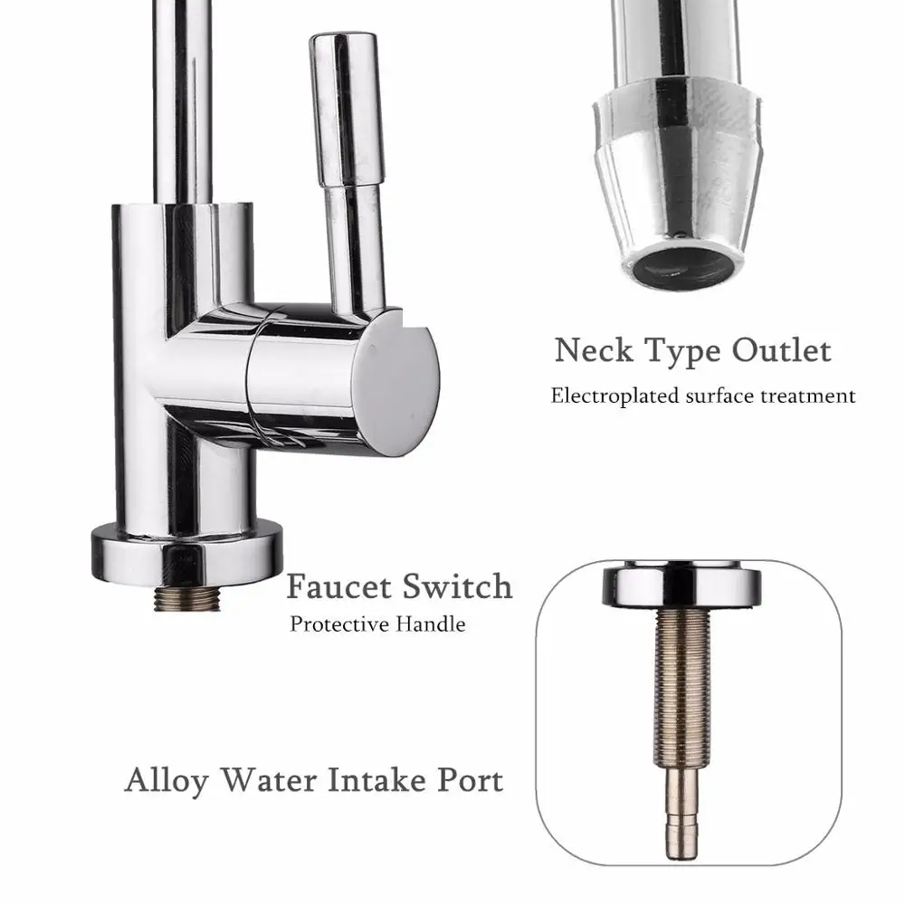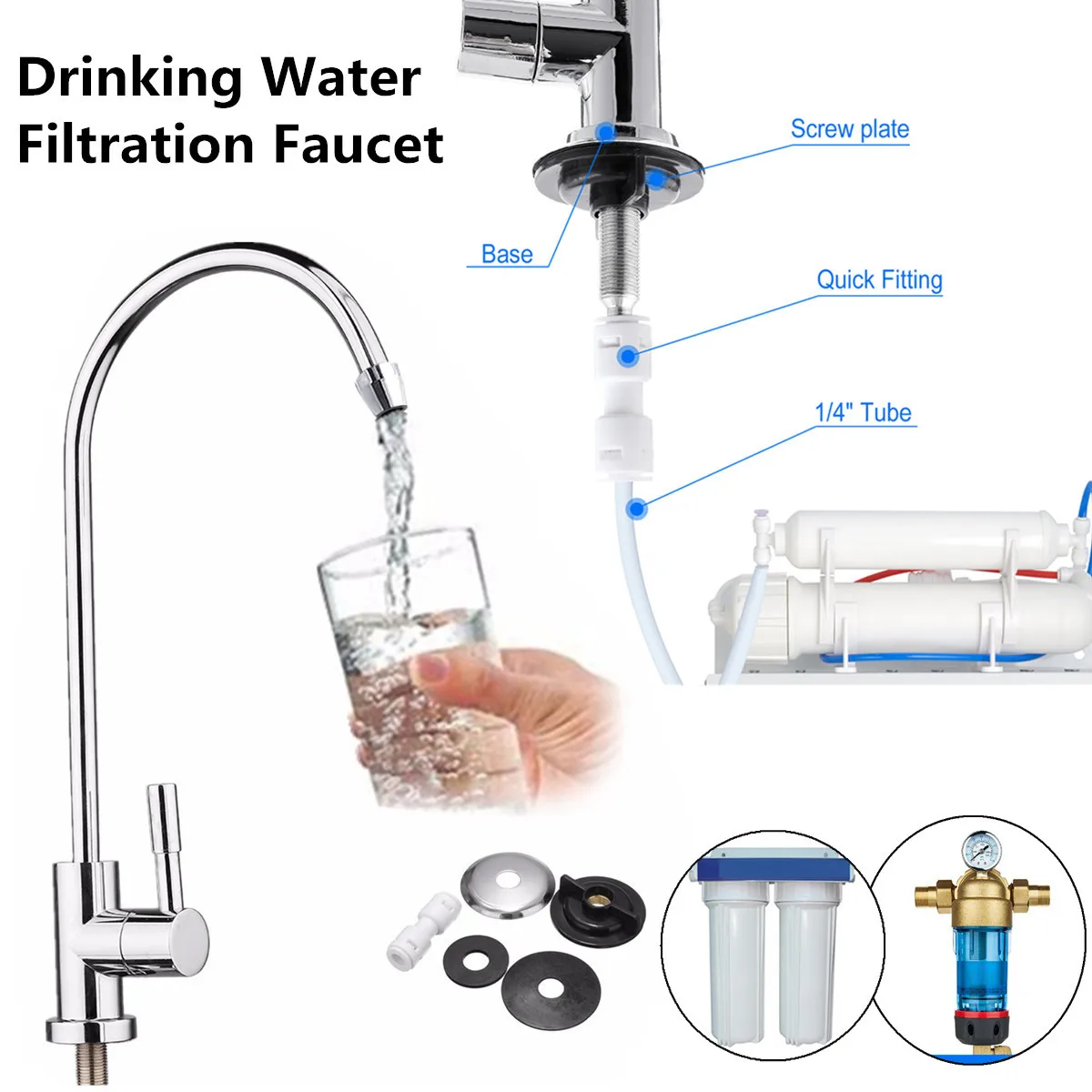 Kitchen Water Filter Faucet Chrome Plated 1/4 Inch Connect Hose Reverse Osmosis Filters Parts Purifier Direct Drinking Tap