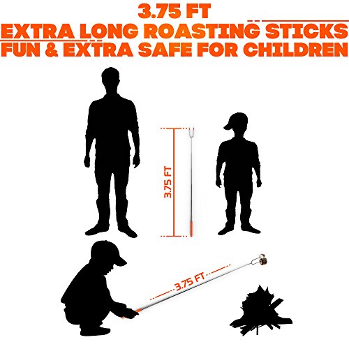 Sicuro per i bambini: le forche telescopiche allungabili extra lunghe da 7,5 "- 45" ti consentono di tenere te e i bambini a una distanza di sicurezza da qualsiasi buca per il fuoco nel cortile, buca per il fuoco nel cortile, falò dei falò o falò. Le punte affilate dei rebbi sono protette con la gomma, rendendole perfette per essere maneggiate attorno ai bambini e rendendole un must per qualsiasi barbecue