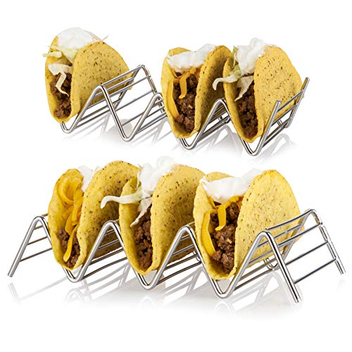 KITCHENATICS Supporto per Tacos in acciaio inox: 2 supporti in metallo per servire Pita, Piade, Hamburger, ecc. - Perfetto per famiglie e feste (Pacchetto di 2) - Per 3-4 tacos