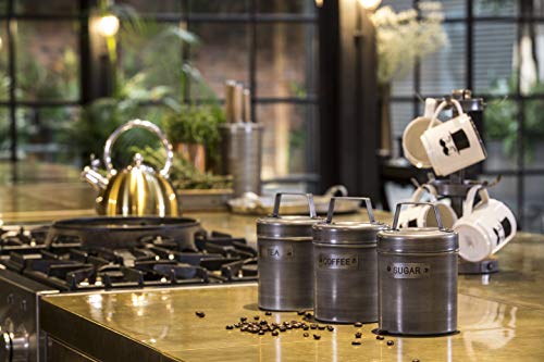 KitchenCraft Industrial Kitchen Sugar, Tea and Coffee Canisters, Metal, 3 Pieces