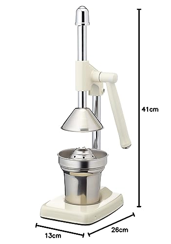 KitchenCraft Living Nostalgia Robusto Spremiagrumi a Pressa Manuale, Tazza Raccoglitore e Colino Sicuri in Lavastoviglie, Pressione fino a 360 kg, Crema