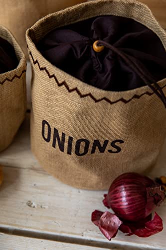 KitchenCraft Natural Elements Sacco in Iuta per la Conservazione di Cipolle con Fodera Oscurante, Colore Marrone, 21 x 21 x 20 cm