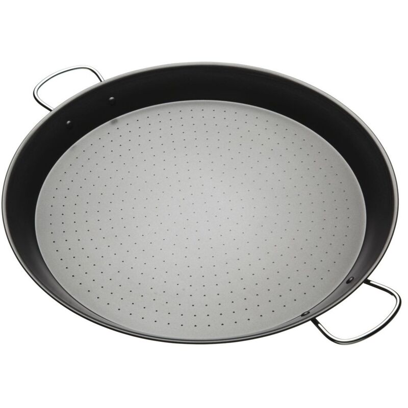 Destinazione: Spagna. Se desiderate qualcosa di facile e veloce da preparare - ma da un sapore fuori dal mondo - lasciatevi ispirare dalla cucina mediterranea. Paella, per forza. Questo piatto spagnolo è ricco di aromi decisi e ingredienti allettanti - peperoni freschi e croccanti, succosi pomodori, chorizo pungente e invitanti frutti di mare. E, naturalmente, deve essere servito direttamente dall'autentica padella per paella. Questa padella in acciaio al carbonio anti aderente è della dimensione ideale per porzioni generose formato famiglia - enorme! Esplorate oggi le diverse opzioni. È il simbolo della cucina spagnola, ma questa padella per paella è perfetta per cucinare di tutto - chili piccante messicano e ardente curry asiatico, morbidi risotti italiani, e fritture inglesi. L'unico limite è la vostra immaginazione.