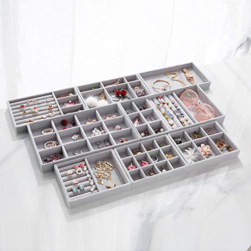 ✅【Soft Material e-, rimovibile divisore】Realizzato in velluto grigio morbido, questo vassoio di gioielli protegge i vostri gioielli da danni e graffi.Divisori rimovibili aiutano a regolare le dimensioni della griglia per ospitare gioielli di varie dimensioni