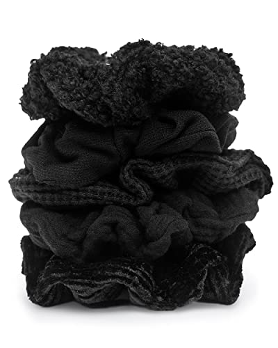Kitsch Elastici per capelli, elastici per capelli da donna, elastici per capelli morbidi, elastici, confezione da 5 (nero testurizzato)