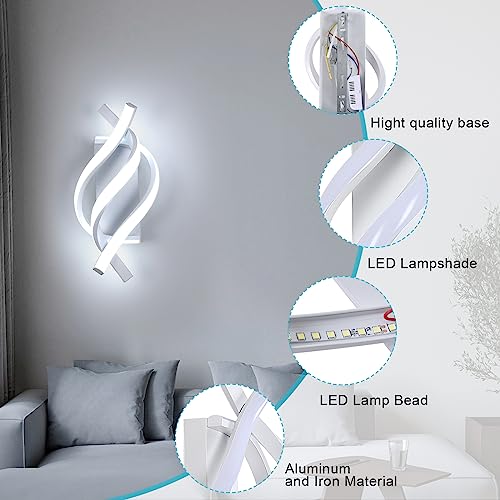 Kiwaezs Applique da Parete Interno, LED 22W Design Curvo, 6000K Luce bianca fredda, Lampada 2500LM, per Camera da Letto, Scala (Bianco)