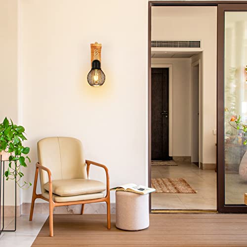 【Presa di corrente】 Corda di canapa intrecciata a mano abbinata a una superficie nera opaca L'attacco E27 conferisce all'applique in legno un'atmosfera retrò, adatta a diversi tipi di lampadine, come lampadine LED, lampadine CFL, lampadine Edison, ecc. Nota: le lampadine non sono incluse nella consegna.