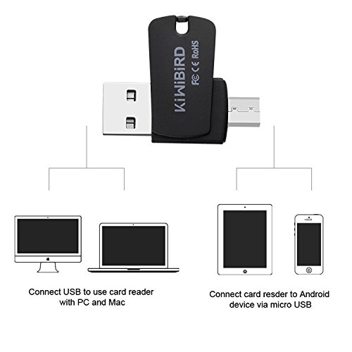 KiWiBiRD Lettore di Schede Micro SD con Connettori USB 2.0 & Micro USB per Smartphones/Tablets con Funzione OTG, PC e Notebook