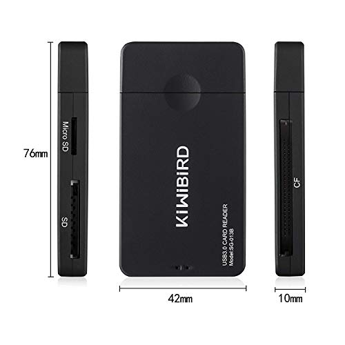 KiWiBiRD USB 3.0 (3.1 Gen 1) Lettore di Schede Super-Speed 9-in-1 per Schede CF Compact Flash (UDMA), SDXC, SD, MMC, RS-MMC, SDHC, Micro SD, Micro SDXC, Micro SDHC [Supporta Schede UHS-I] - Nero