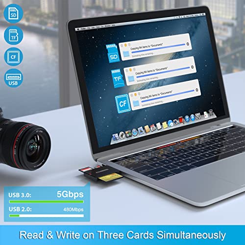 Plug and play. Compatibile con PC, Mac e Smart TV. Consente di leggere/scrivere su schede CF, SD e Micro SD contemporaneamente, a differenza degli altri lettori di schede. Utilizzate appieno la velocità potenziale delle vostre memory card.