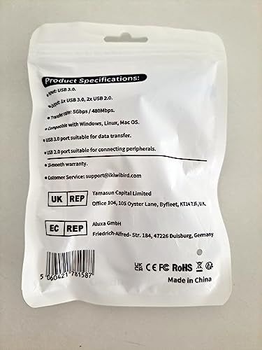 KiWiBiRD Hub USB Mini con Multi Porte (1x USB 3.0 2X USB 2.0), Adattatore di estensione dello splitter USB per computer portatile MacBook compatibile con stampante Tastiera Mouse Cuffie