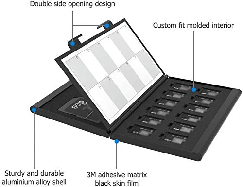 Alta qualità: guscio in lega di alluminio di alta qualità con cuscinetto anti-shock EAV, forte e durevole. La custodia per schede di memoria è protable e consente di metterlo in tasca, in borsa a mano o nello zaino.
