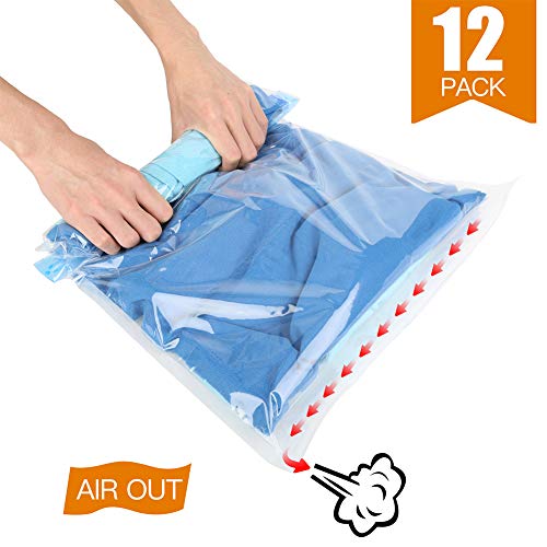 KIWISE Vakuumbeutel Reise zum Rollen per Hand Vakuum Aufbewahrungsbeutel Kompression für Gep?ck 12 TLG