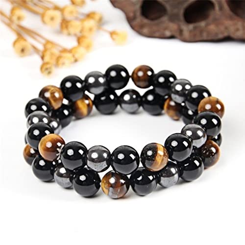 Kiwochy Bracciale Tripla Protezione 8/10 mm Bracciale Con Perline Ossidiana Bracciale Equilibrio Bracciale Ossidiana Nera Pietra Occhio Tigre Bracciale Ematite Bracciale Buona Fortuna per Donna Uomo