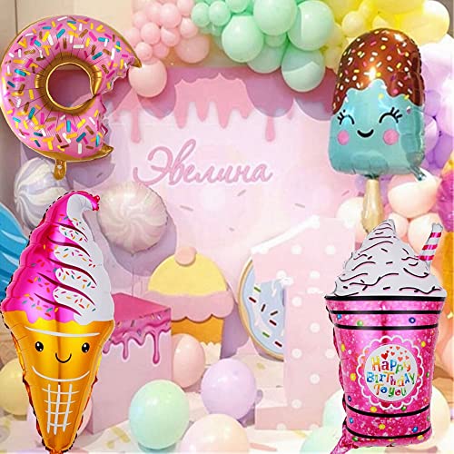 Kiwochy Ice Cream Ciambella Palloncini Set Ciambella Decorazione Compleanno Palloncini Ciambella Hamburger Pizza Palloncini Estate Gelato Tema Palloncini per Compleanno Decorazione