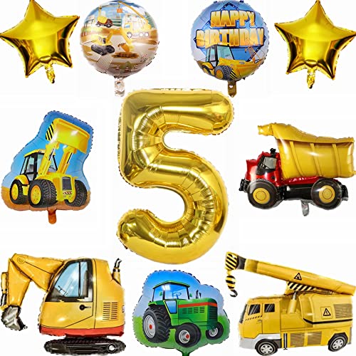 Kiwochy Escavatore, decorazione per compleanno, 5 anni, trattore, 5 anni, decorazione per bambini, 5 compleanni, trattore, palloncini, per cantieri, compleanni, feste, decorazione per bambini,
