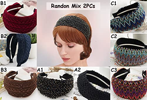 KizBruo 2 pezzi Fasce larghe e dure, Moda Fatto a mano vintage Fascia per capelli spessa Tessuto retrò Copricapo lavorato a maglia per accessori per capelli da donna e ragazza(A1B2)
