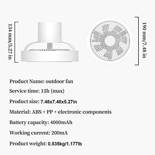 KJIUQ Ventilatore da soffitto ricaricabile USB piccolo ventilatore da soffitto portatile esterno esterno ventilatore da appendere desktop luce notturna mini multifunzione dimmerabile