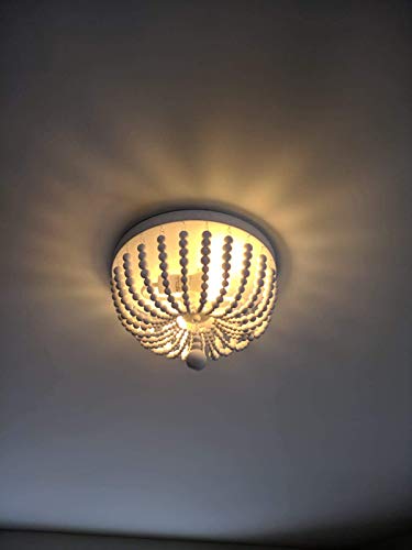 KJLARS Plafoniera a sospensione a soffitto in stile rustico rustico Perline di legno Lampada antico Pendente per cucina Soggiorno Sala da pranzo Camera da letto 36CM * 28cm E14 * 2 (Perline di legno)