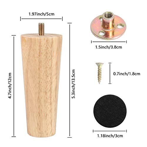 KJLEEN 4 Pezzi Gambe per Mobili Gambe per Tavolo in Legno Gambe per Mobili affusolate di Ricambio 12 cm Piedini per Divano Gambe in Legno per Gambe per Armadietto per Tavolo Divano Letto