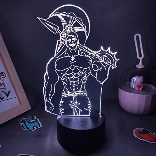 KJsdaADSA 3D Illusion Light Led Night Light Anime The Seven Deadly Sins Escanor Figura Compleanno Regali freddi per amico Manga Lampada da tavolo Decor Compleanno per bambini 16 colori