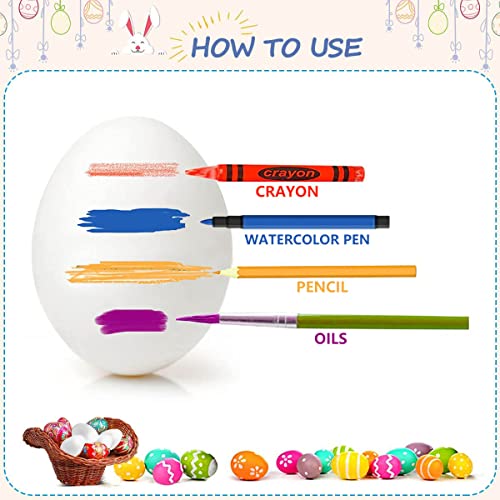 【Lista di imballaggio】 Riceverai 24 uova di plastica bianche, 24 nastri colorati e 24 fibbie di plastica. Dimensioni dell'uovo: 6 × 4 cm