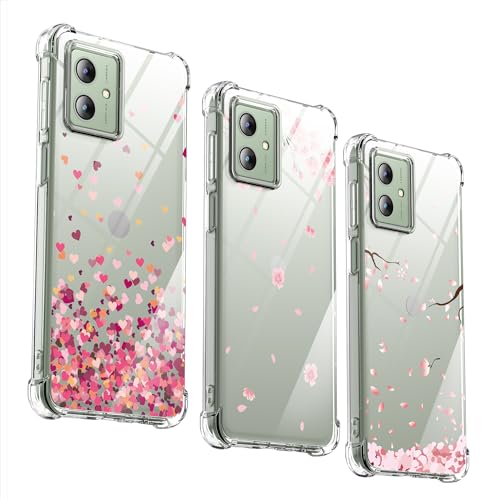 KJYLPO 3 Pack Cover per Moto G54, Custodia Sottile Morbido TPU Trasparente Bumper Silicone Antiurto Protettiva Custodia per Motorola moto G54 5G con Disegni Rosa