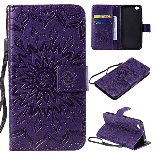 KKEIKO Cover per Xiaomi Redmi Go, Portafoglio Custodia in PU Pelle per Xiaomi Redmi Go, Fiore del Sole Design Antiurto Cover per Xiaomi Redmi Go - Viola