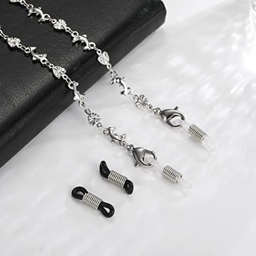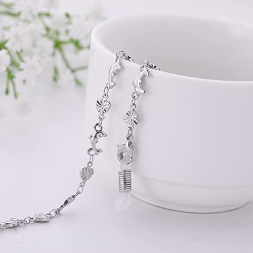 Kkjoy Cinghie per occhiali da vista Catena in acciaio inossidabile Cordini per occhiali da sole Supporto per collana Occhiali per occhiali da sole per donne e uomini (D - Argento)