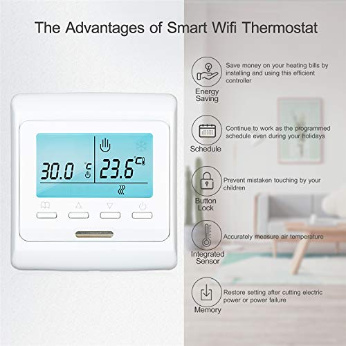 KKnoon Termostato intelligente programmabile WiFi Sensore integrato con display LCD Controllore di temperatura digitale APP Telecomando