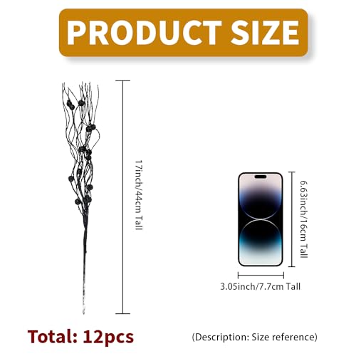 KKSTY Confezione da 12 bastoncini spray glitterati per albero di Natale, ghirlande, composizioni floreali, riempitivi per albero di Natale, colore: nero