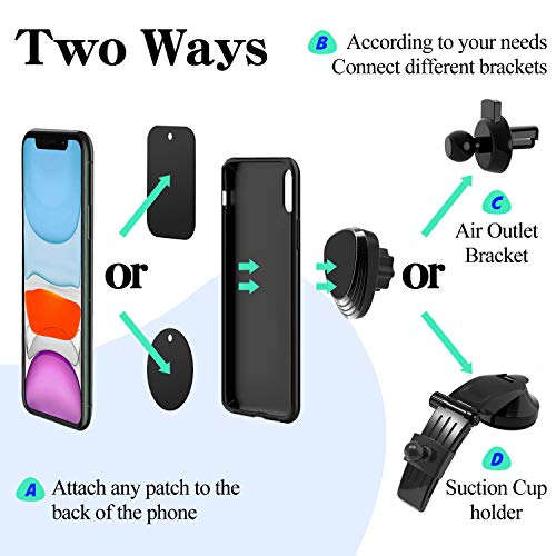 Installazione semplice - la piastra di metallo circolare inclusa (per i telefoni più piccoli) e la piastra metallica rettangolare (per quelli più grandi) scivoleranno facilmente tra il tuo telefono e la custodia o aderiranno in tutta sicurezza al retro del telefono.